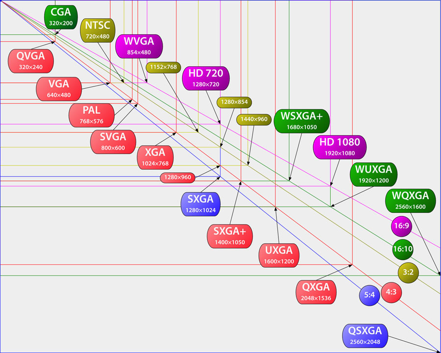 Le tableau ci-dessous montre la diversité des standards des écrans vidéo qui vont des ratios 5/4 à 17/9. Il ne reflète toutefois pas les tendances générales d'évolution.