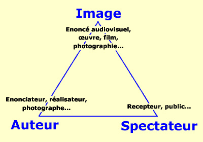 • Dans un premier temps nous évoquerons les trois entités bien concrètes que sont : l'auteur, l'objet audiovisuel et le spectateur et qui constituent les trois pôles de base de toute communication audiovisuelle.