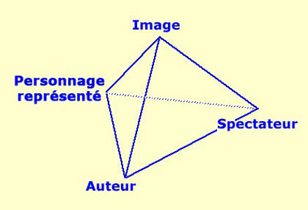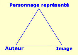 Lorsque un ou plusieurs personnages sont représentés les relations entre auteur, image et spectateur doivent prendre en compte ce qui peut constituer ainsi un quatrième pôle dans notre schématisation.
