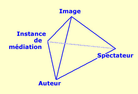 (Par exemple, pour un film de cinéma vu en salle, il sera infiniment plus pertinent de parler de la triade : réalisateur-film-spectateur.)